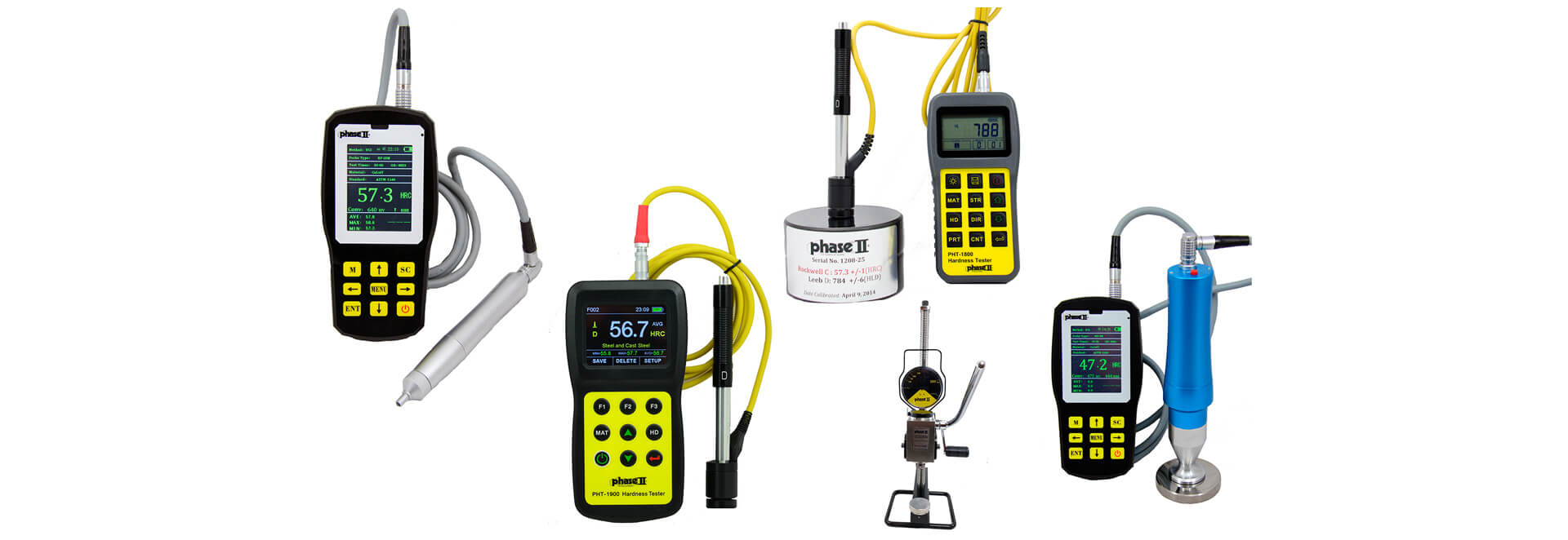 As a manufacturer of Material Testing Instruments, Phase II’s greatest product focus is still Hardness Testers. We offer a full array of product from Portable Hardness Testers to Rockwell Hardness Testers, Vickers Hardness Testers and Brinell Hardness Testers. Our portable hardness testers include ultrasonic portable hardness testers, dynamic leeb portable hardness testers and hydraulic Brinell portable hardness testers. Bench hardness testers include Rockwell Hardness Testers in analog models, and digital rockwell hardness testers, both with weight load and load cell force systems. Vickers hardness testers come in both micro hardness testers and macro hardness testers. Brinell hardness testers are all digital and load cell driven, coming in semi automatic and fully automatic versions.