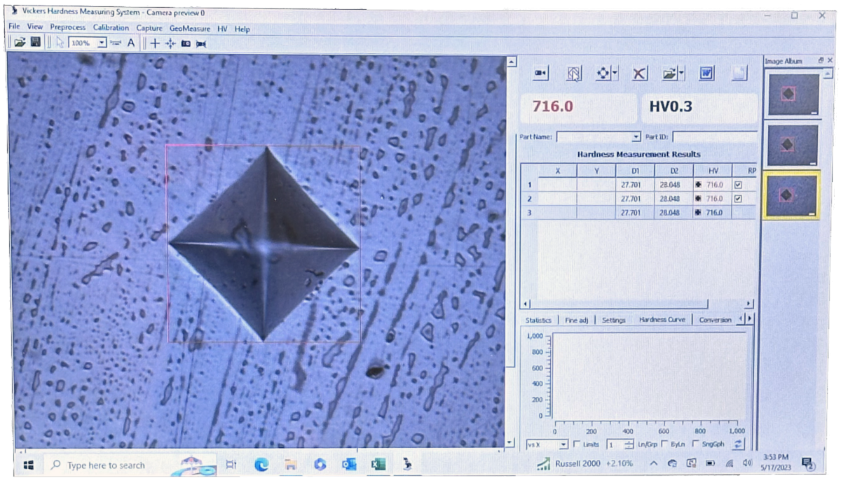 - Measurement software will do hardness conversions on screen as well as display and save pictures of indentations.