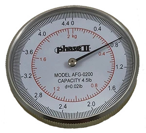 Phase II force gauges are designed and engineered to achieve WORLD-CLASS tension/compression measurements. Heavy duty construction allows the force gauges to undergo rough handling in any environment, while providing for extremely sensitive and highly accurate readings. The Phase II force gauges include a direct dual scale reading in both lbf and kgf, eliminating the need for two separate gauges in the shop. Force gauges can be hand-held or mounted to an optional force gauge test stand. All force gauges come as a complete kit, containing 5 measuring attachments and plastic carrying case. Numerous models are available to cover a complete range of force capacities.