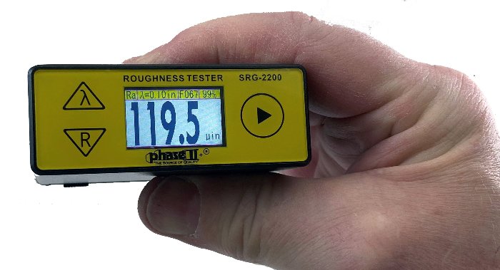 The New Phase II SRG-2200 Mini Surface Roughness Tester is a next generation of surface roughness tester developed by the Phase II Metrology Group that features high accuracy, a wide range of application, simple operation and stable performance. It is widely applicable in surface roughness testing all kinds of metals and non-metals. Large memory with data output via Bluetooth.